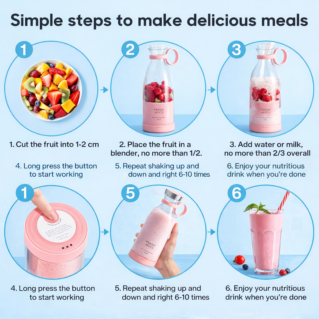 Enjoy fresh, nutrient-packed smoothies anywhere with this sleek, rechargeable blender. Perfect for busy lifestyles, it delivers powerful performance in a compact design that fits right in your bag for ultimate portability.